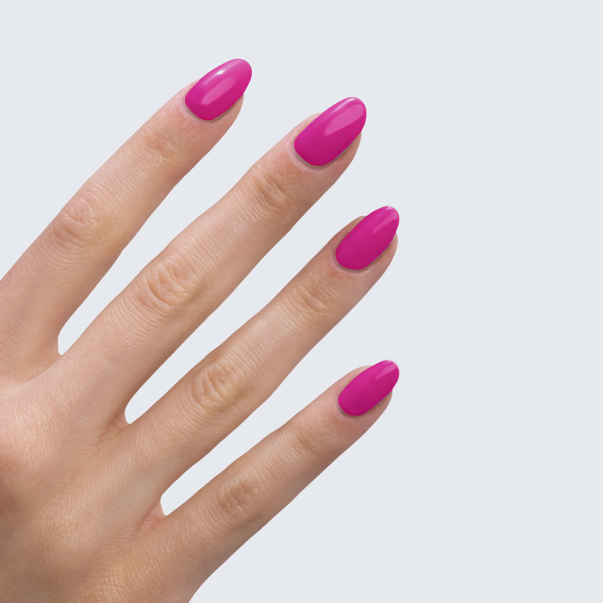 Neon barbie pink. Semi-gloss. Bright. Opaque. Cool undertone.
